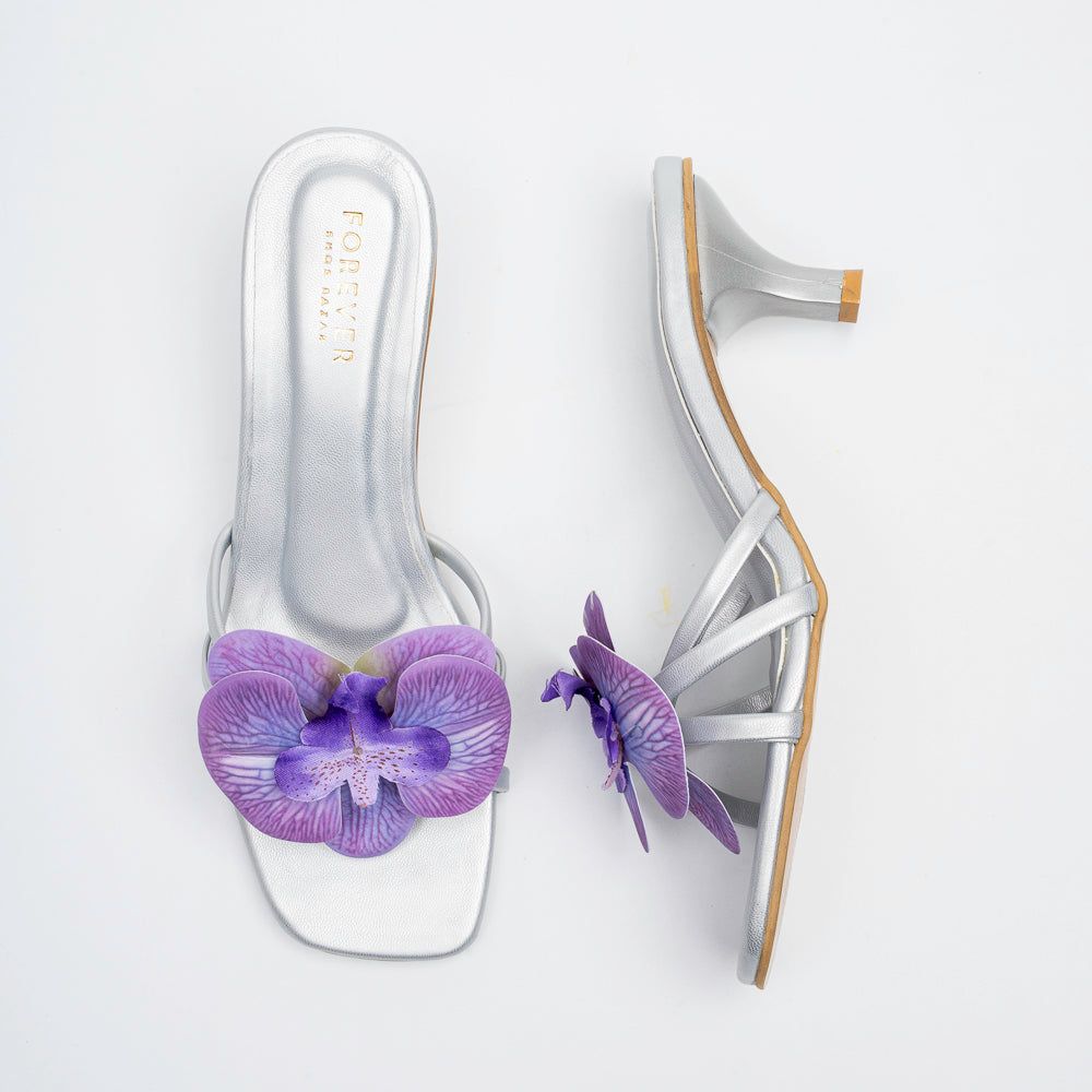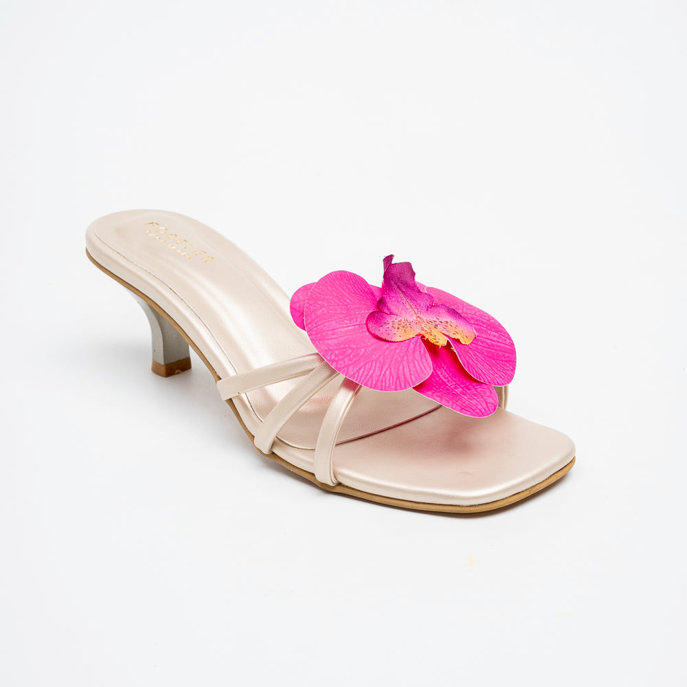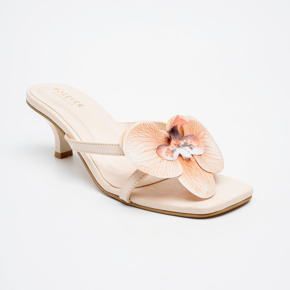 Soft floral accents add a feminine touch to a refined heel. Perfect for brunches, evenings, and special outings. Style meets comfort in every step you take.