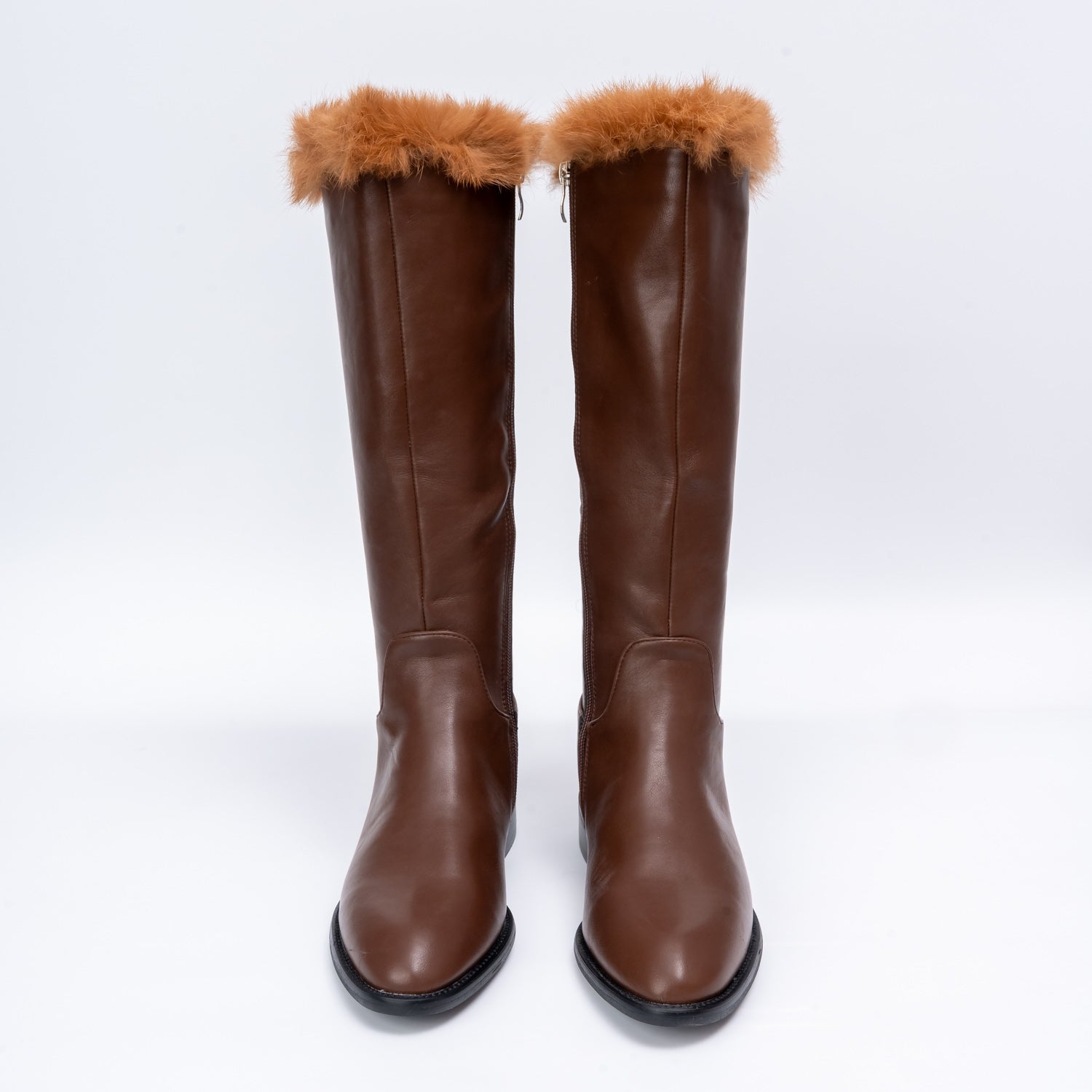 Material: PU(Polyurethane) USP: Knee-High Boots with Faux Furr Closure Type: Side Zipper Colour: Coffee Length: 38.0 cm Heel Height: 3.0 cm Occasion: Casual Wear Shoe Sole: Rubber Sole |