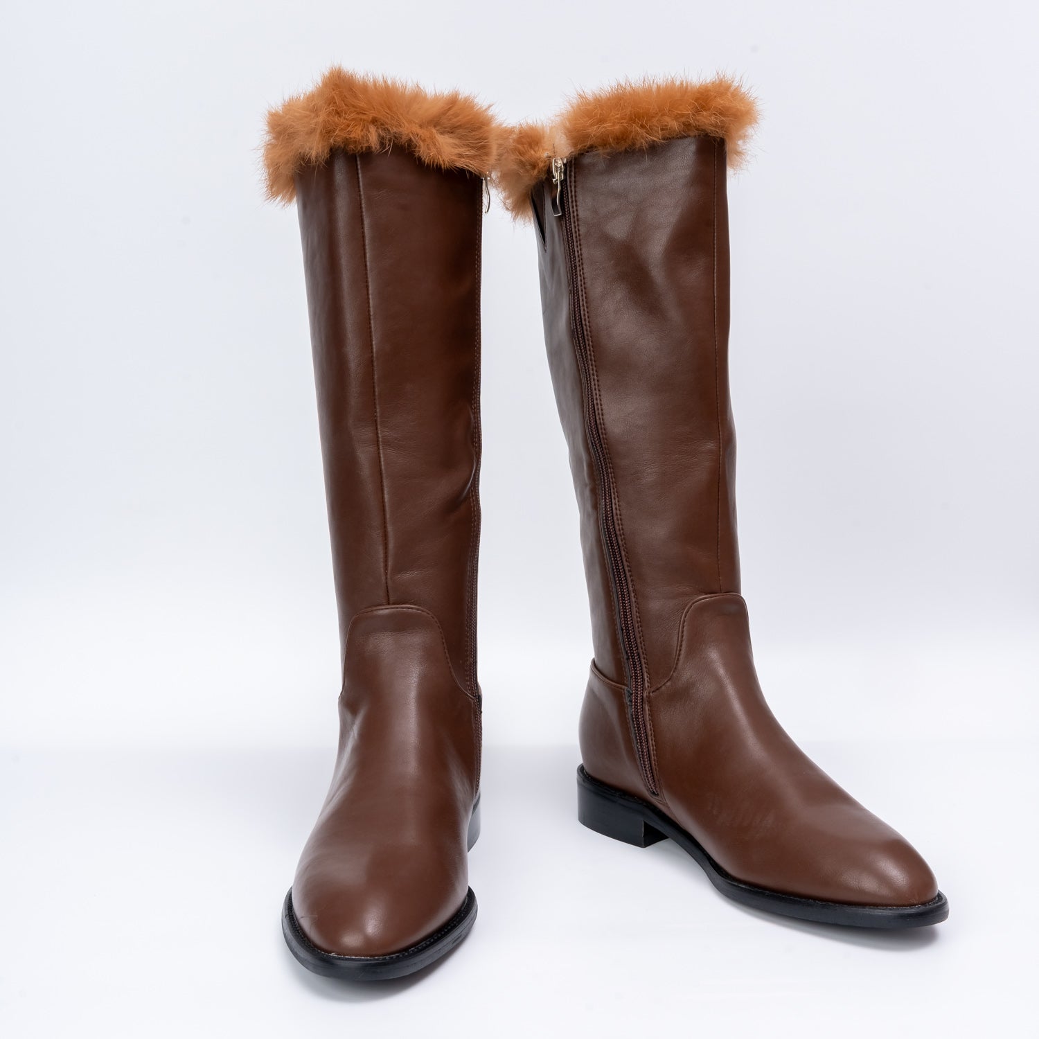 Stride boldly with these casual knee-high boots, featuring a luxurious faux fur lining for warmth and style. A must-have for making a statement this season.