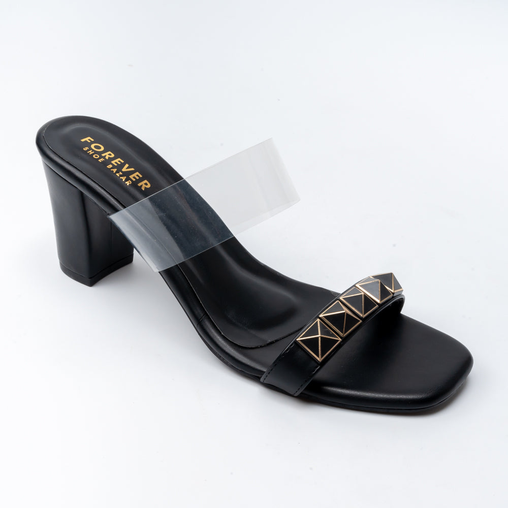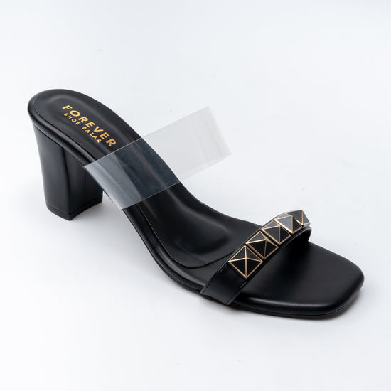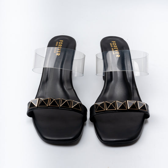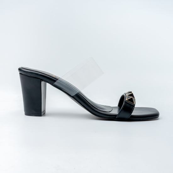 USP: Stylish Dual-Strap Heel with a Transparent Strap and Bold Studded