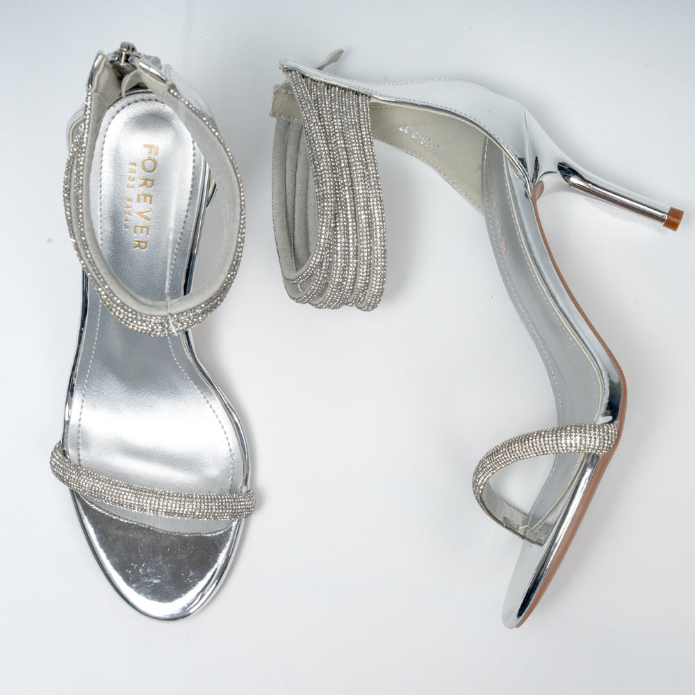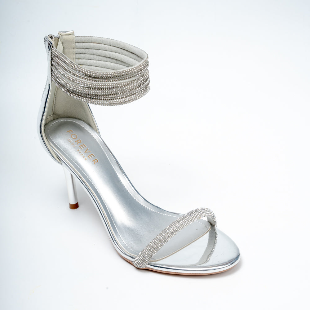 Material: PU(Polyurethane) USP: Rhinestones Closure Type: Sandal Colour: Silver Heel Height: 9.0 cm Occasion: Party Wear Shoe Sole: Synthetic Sheet Sole |