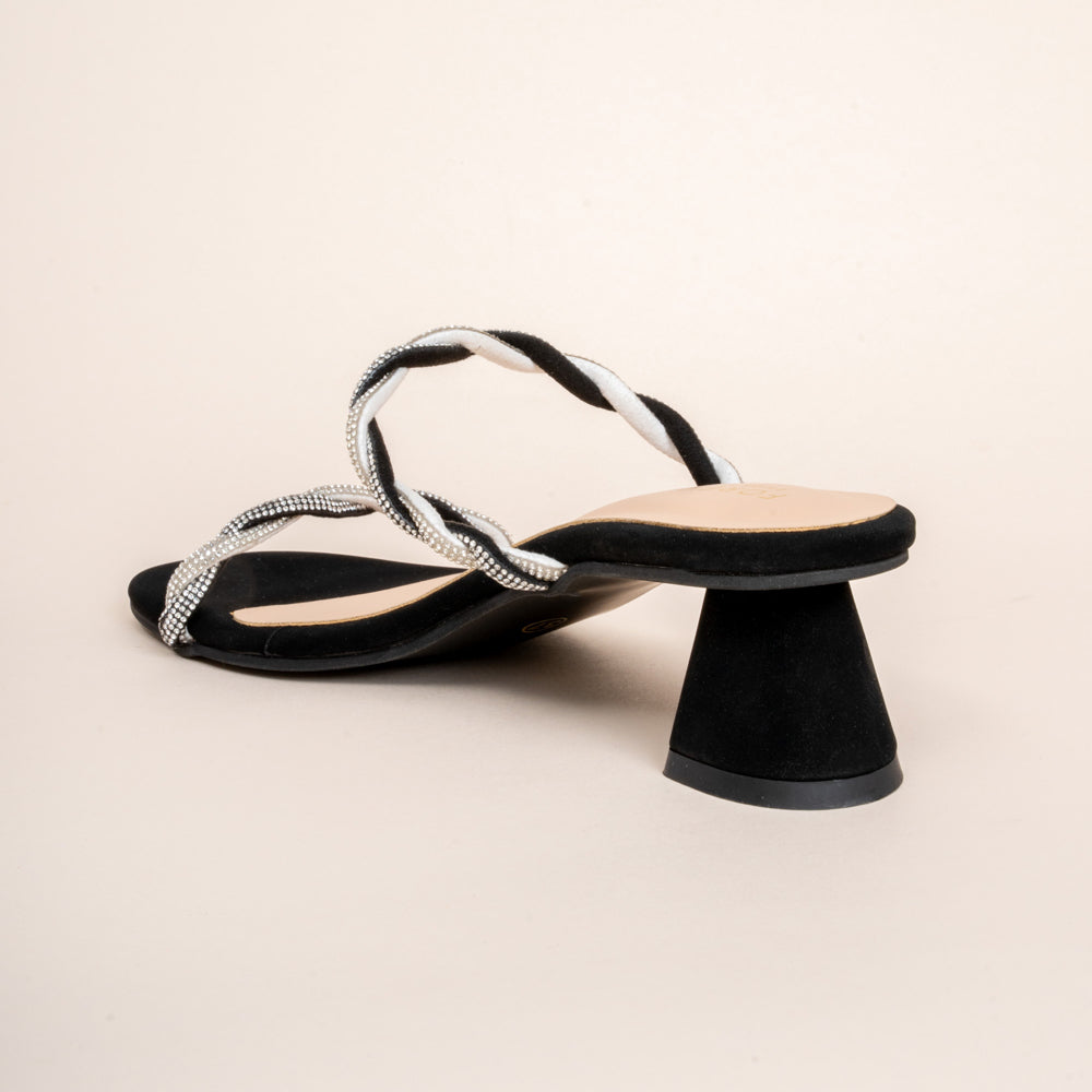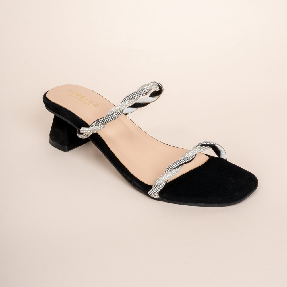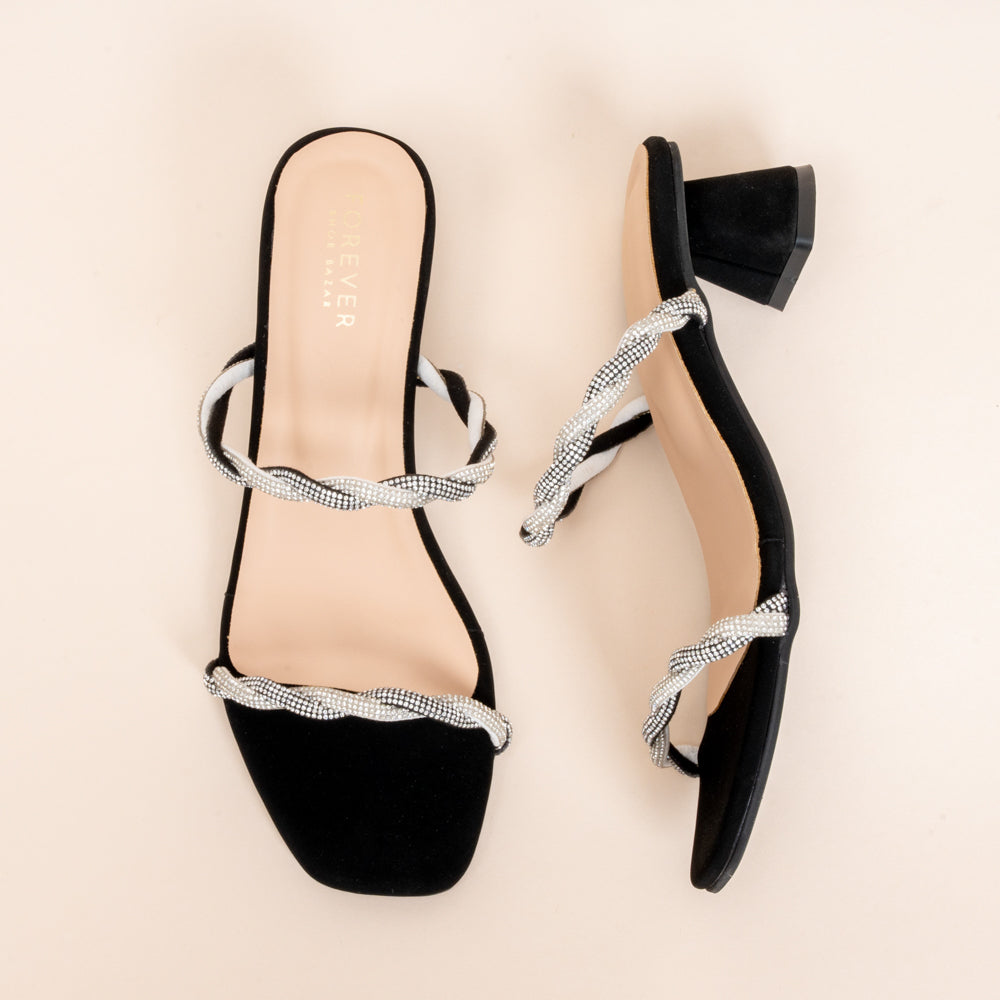 Material: PU(Polyurethane) USP: Rhinestones Closure Type: Slipper Colour: Black Heel Height: 5.0 cm Occasion: Party Wear Shoe Sole: Synthetic Sheet Sole |
