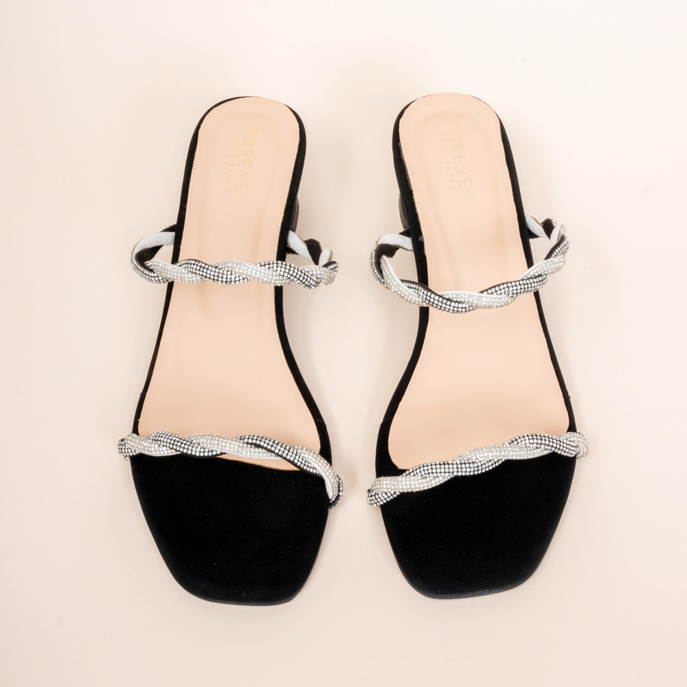 Step into the spotlight with these strappy heels, featuring twisted diamante detailing for a touch of dazzling glamour. Perfect for turning heads at any event.