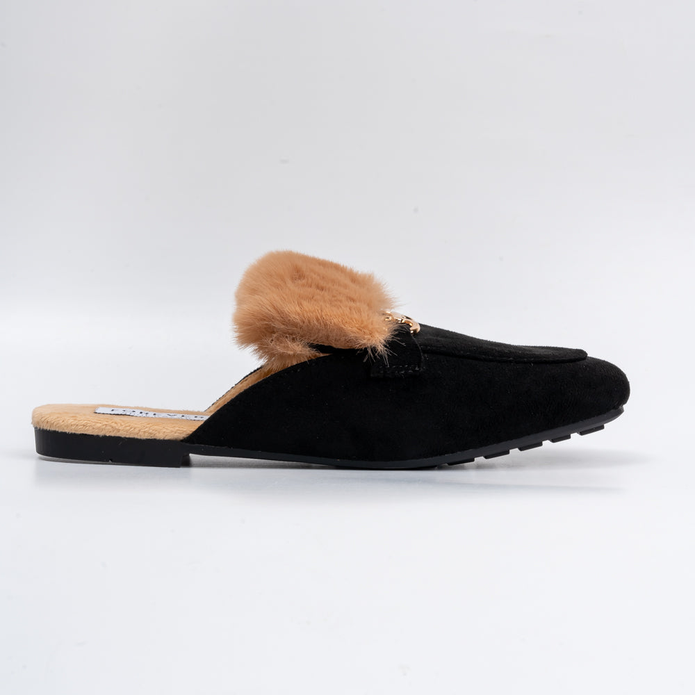 Make a bold statement with these mules, featuring plush faux fur and sleek gold buckle detailing. Effortlessly stylish, they’re perfect for adding a touch of luxury to your everyday looks.