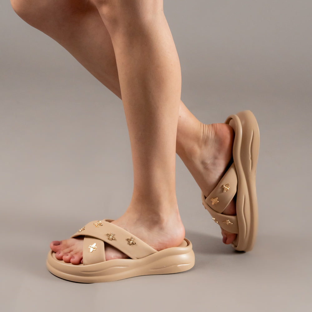 Bee-lieve In Yourself - Beige Cross Slides