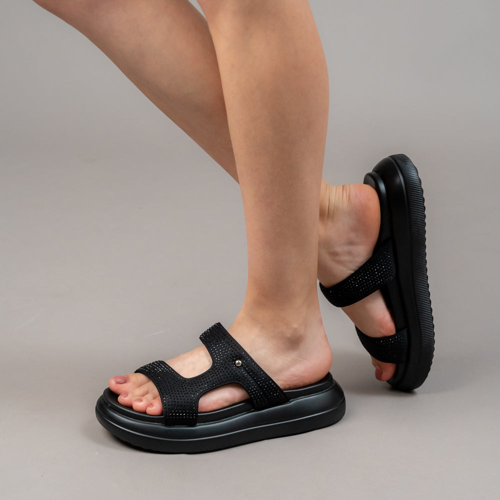 Eleven On Ten - Black Casual Slipper with Rhinestones