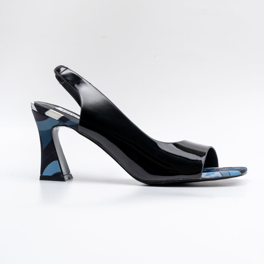 Material: Patent PU(Polyurethane) USP: Printed Satin Heel Cover and Toe Closure Type: Slingback Colour: Black Heel Height: 8.0 cm Occasion: Casual Wear Shoe Sole: Synthetic Sheet |