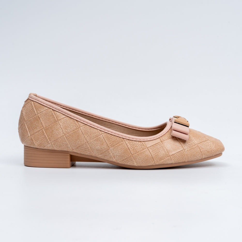 Introducing the Quilted Charm - Khaki Flat Ballerinas—a polished, everyday favorite. Crafted with a checkerboard-quilted texture in warm cognac tones, these flats boast a soft square-toe silhouette and a charming grosgrain ribbon bow accented with glossy geometric hardware. A subtle block heel gives gentle lift while ensuring all-day comfort. Whether for work, weekend, or casual chic, these ballet flats strike the perfect balance between elegance and practicality.
