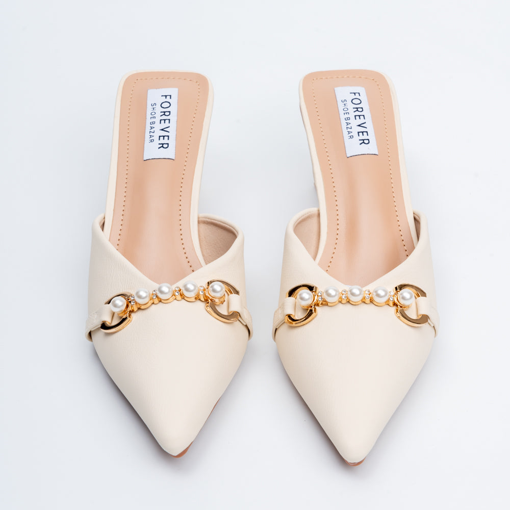 Pearl Embellished - Beige Mules