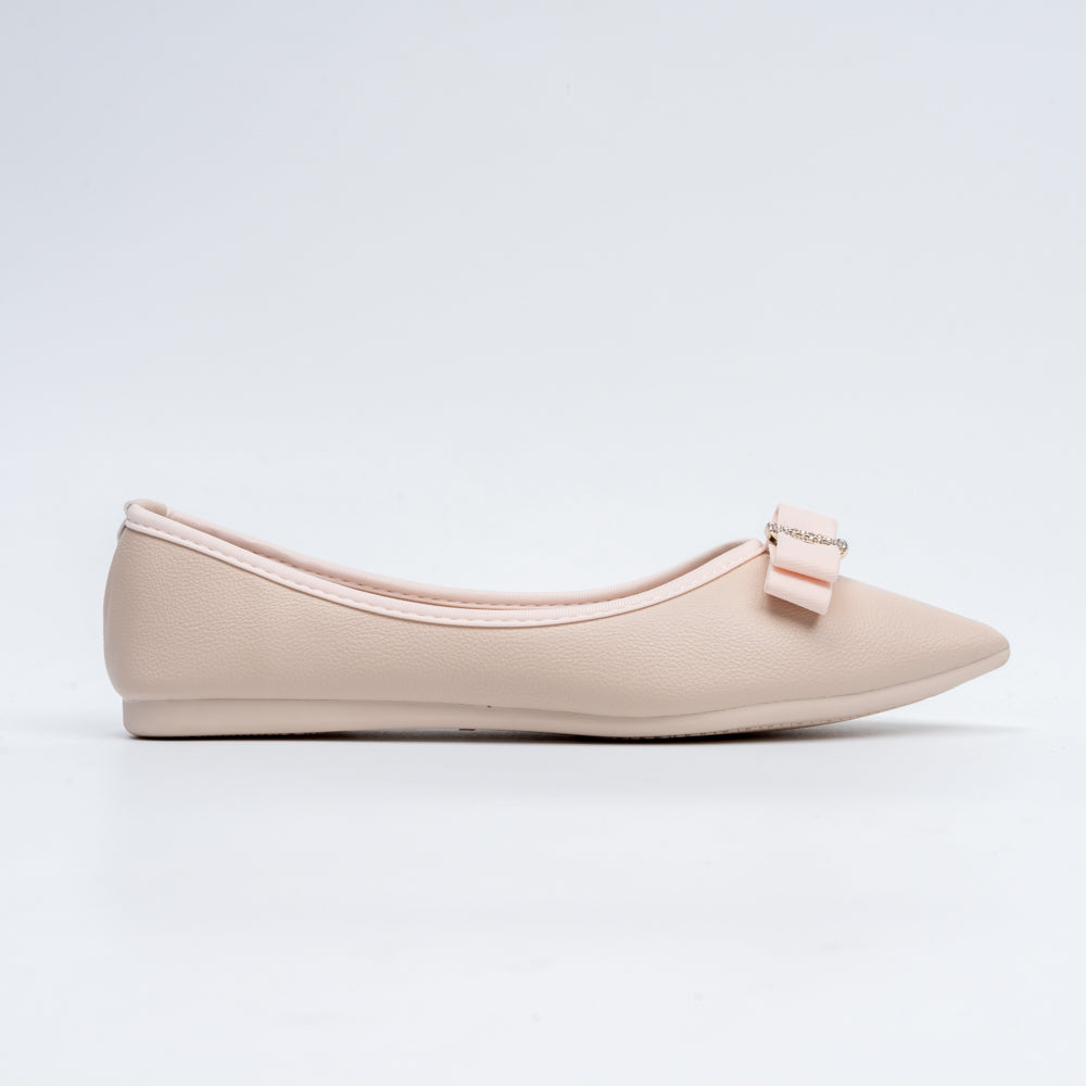 The Bella Bow - Beige Flat Ballerinas