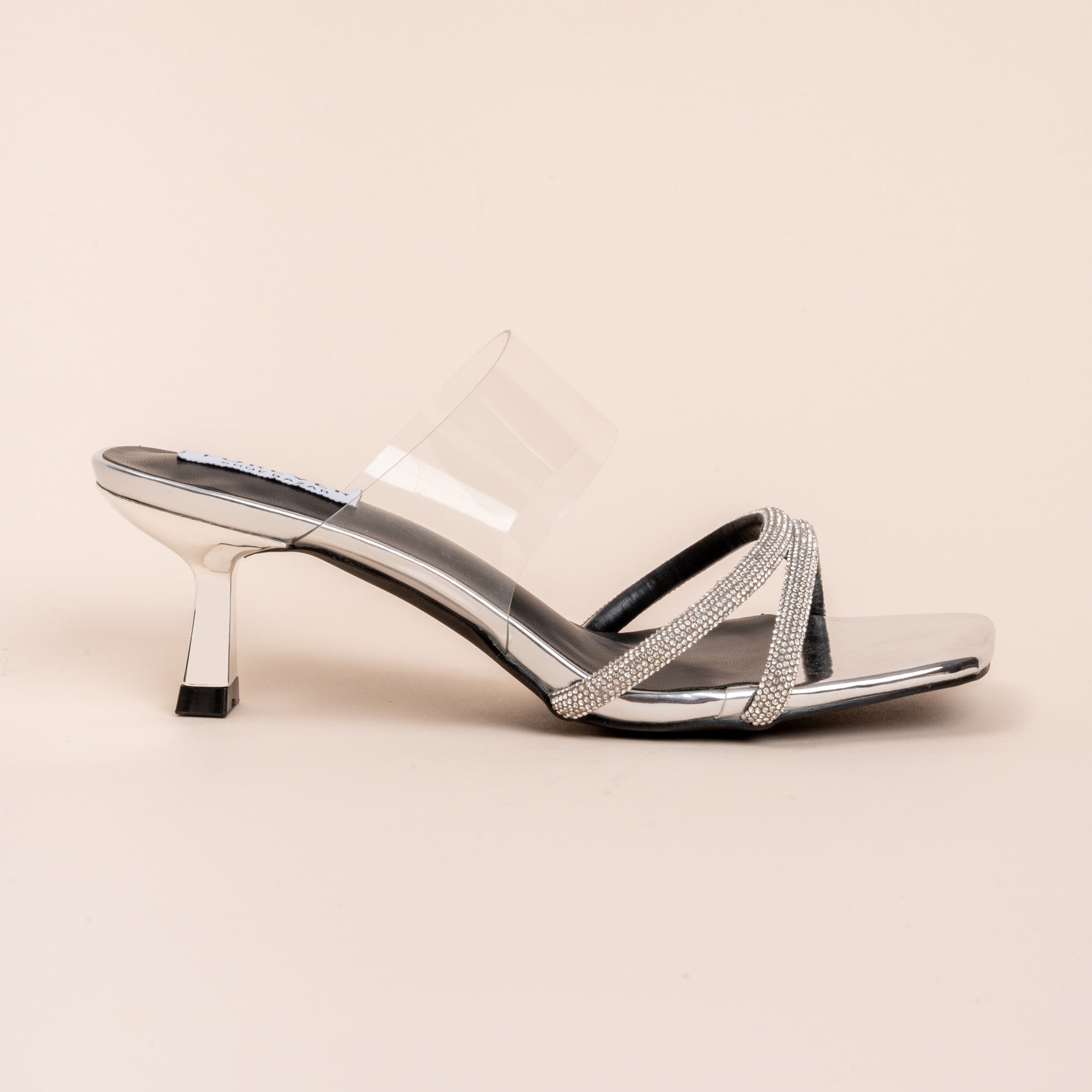 Turn heads with these sleek kitten heels, combining subtle elegance with diamanté detailing and translucent strap for everyday comfort. Perfect for adding a chic touch to any outfit.