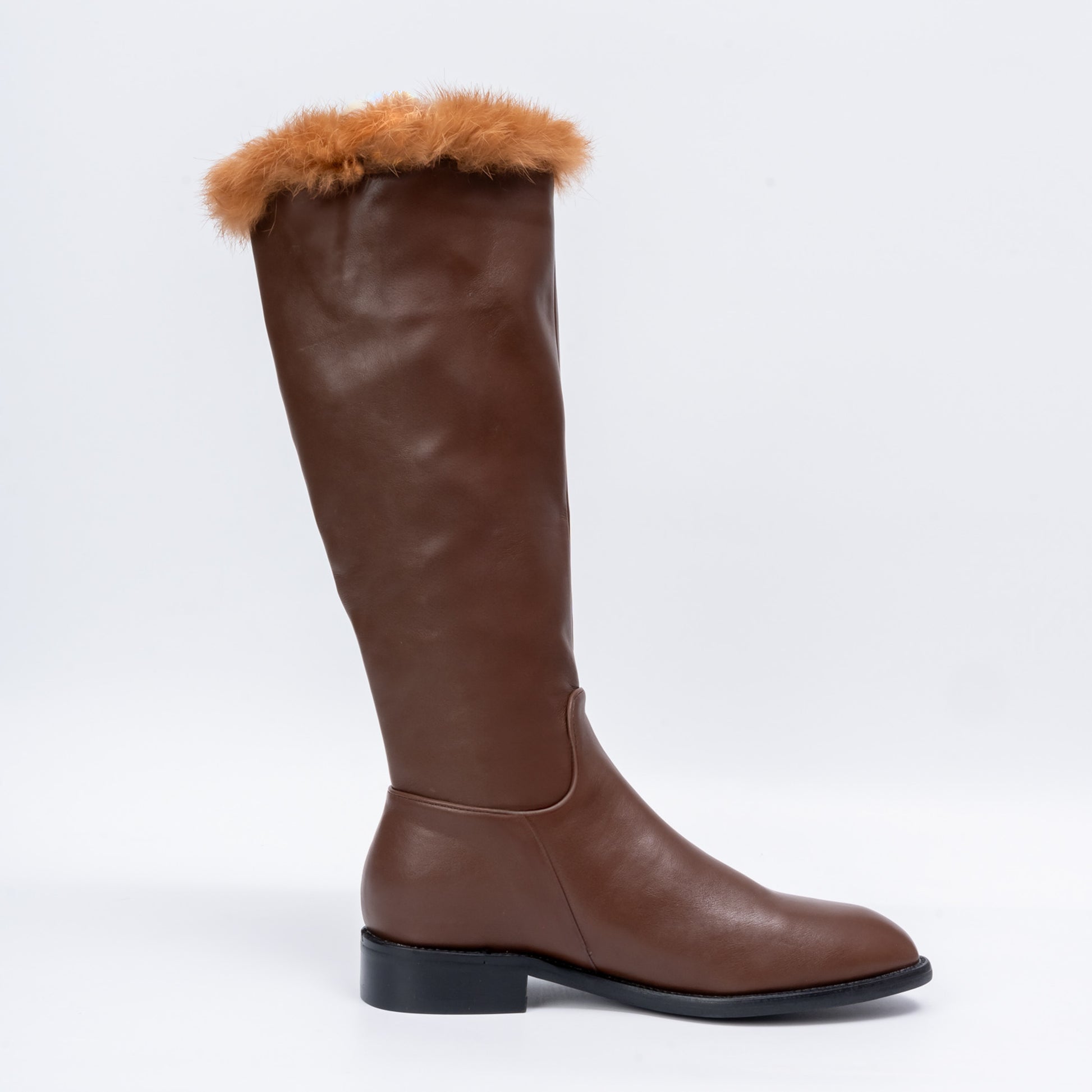 Material: PU(Polyurethane) USP: Knee-High Boots with Faux Furr Closure Type: Side Zipper Colour: Coffee Length: 38.0 cm Heel Height: 3.0 cm Occasion: Casual Wear Shoe Sole: Rubber Sole |