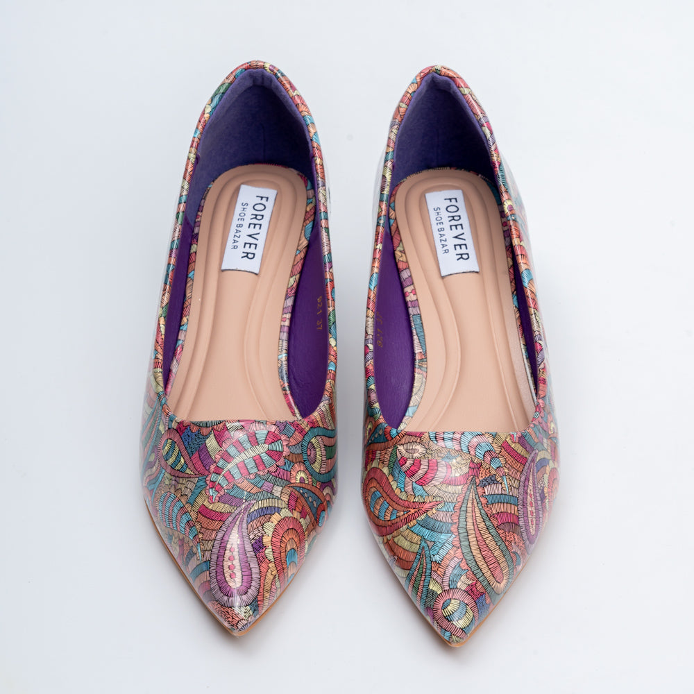 USP: Artistic Multicolor Pattern with Pointed Toe for Elegance