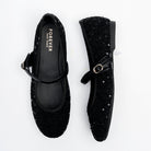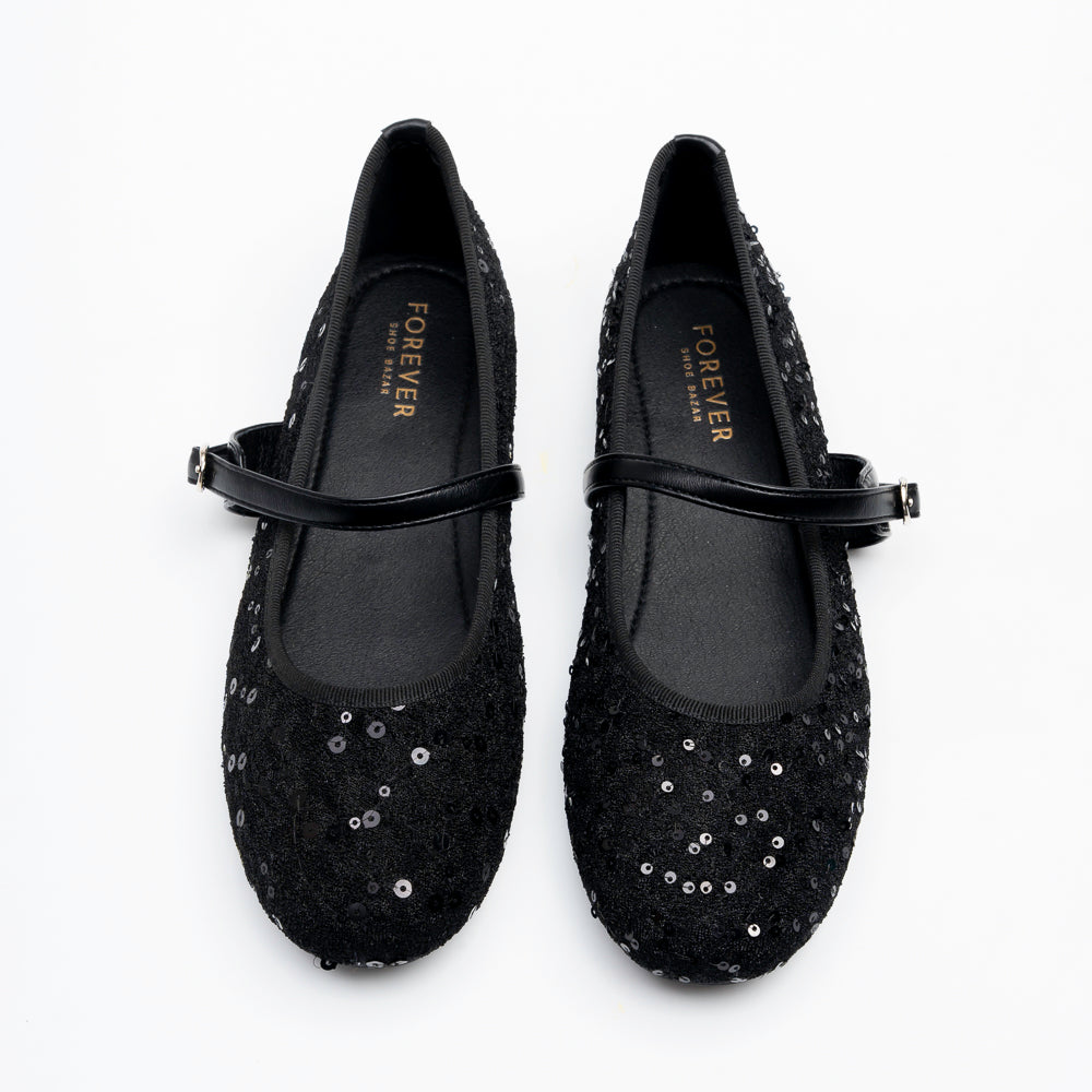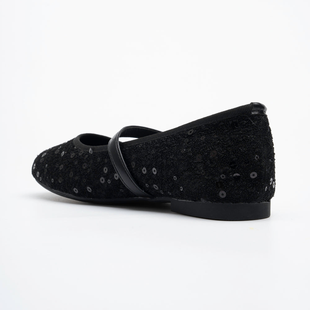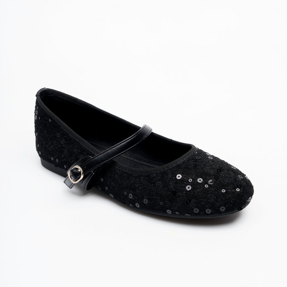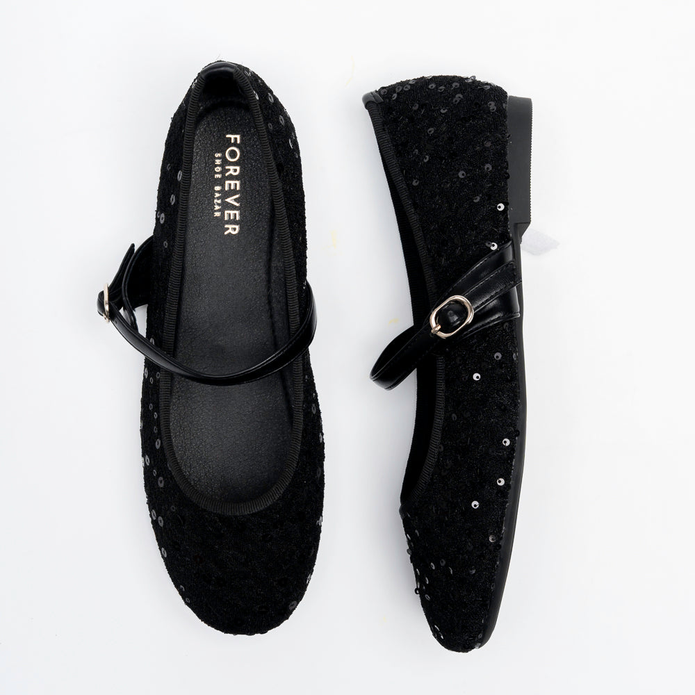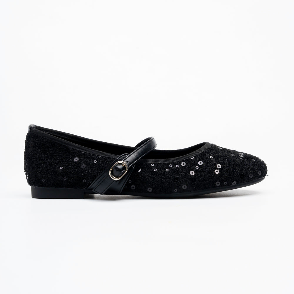 The Scarlet Spark Mary Jane Flats features a fully sequined black upper that shimmers with every step, secured by a sleek black leather Mary Jane strap with buckle closure. The cushioned footbed and flexible sole ensure comfortable flat wear, while the rounded toe maintains a playful yet polished silhouette. This design adds bold color and texture to your footwear collection.