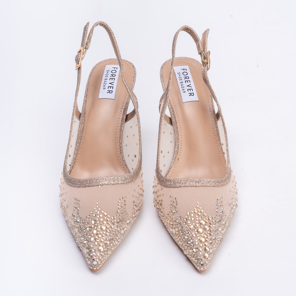 Command attention with every step—these party heels feature a sultry net upper, dazzling rhinestones, and a sleek pencil heel for an effortlessly glamorous look.