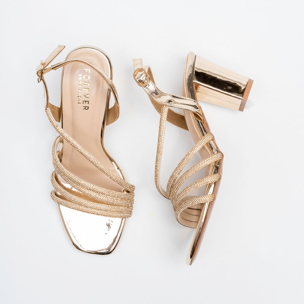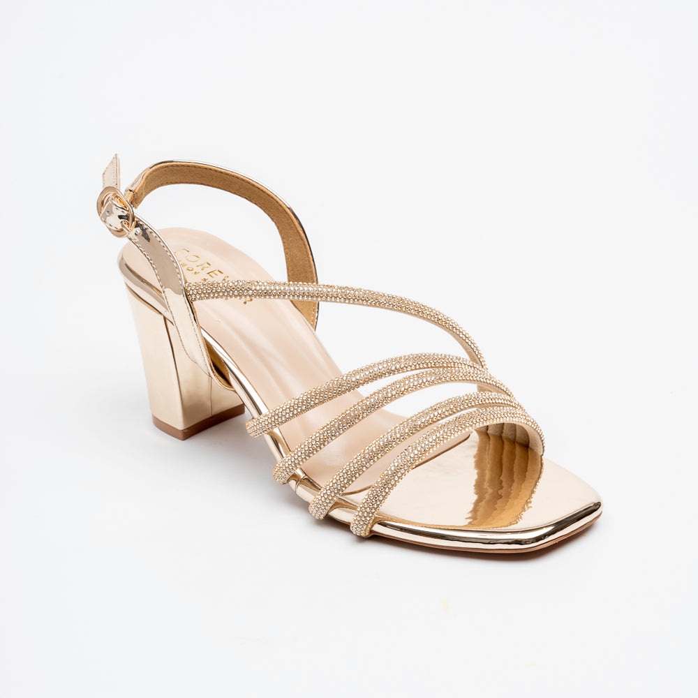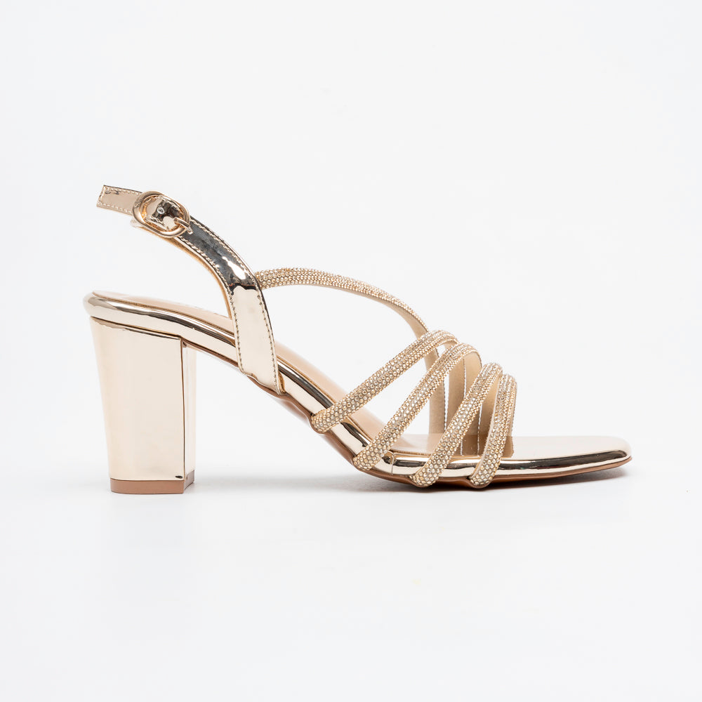 Luminara Crystal Strap Heels - Gold