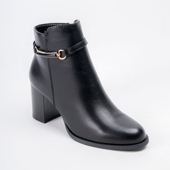 Elevate your style with Diva Dazzle – Black Ankle Boots, designed to radiate refined glamour with every step. Crafted in sleek black leather and set atop a modern block heel, these boots showcase a polished gold bar detail at the ankle for a chic, jewelry-inspired accent. Their streamlined silhouette ensures comfortable wear and timeless appeal, easily transitioning from weekday sophistication to weekend allure. Whether you're dressing for the office, a dinner date, or a night out, Diva Dazzle stands out as the perfect statement piece for fashion-forward wardrobes.