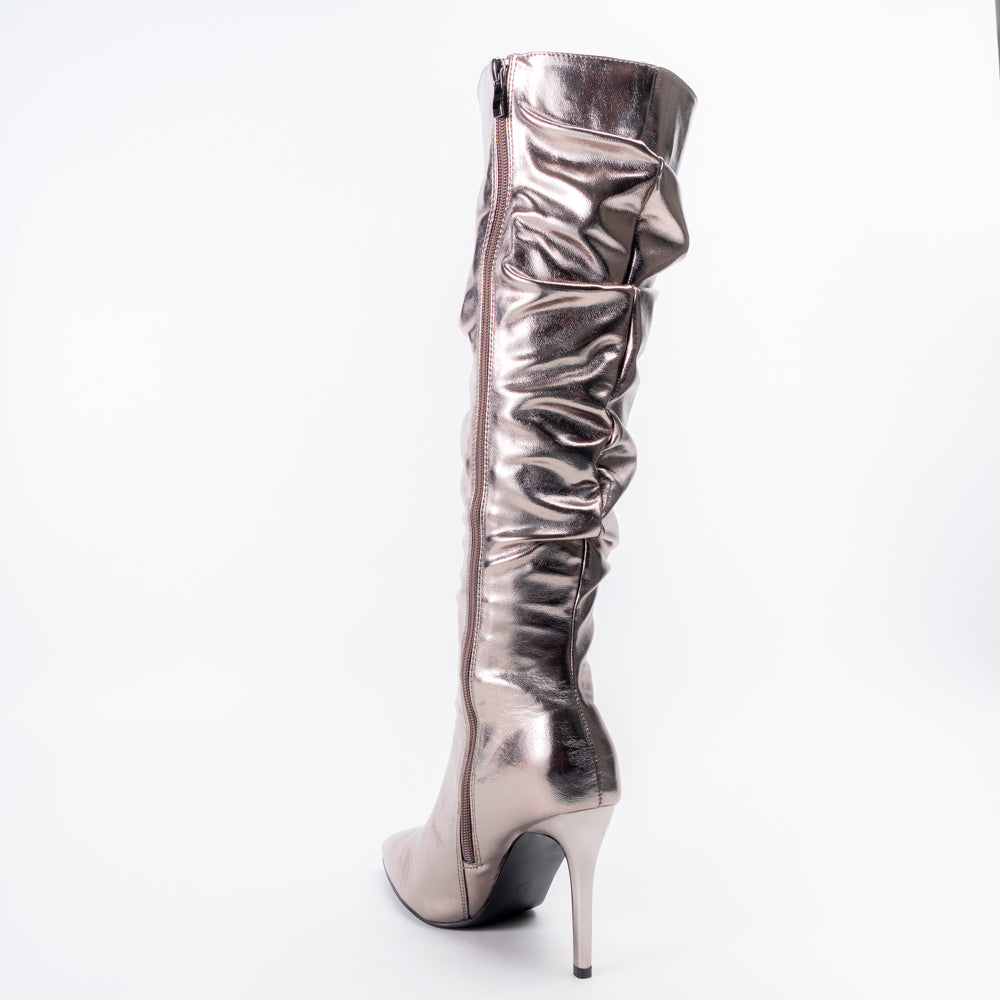 USP: Metallic Wrinkled Finish with Pointed Toe Stiletto Heel