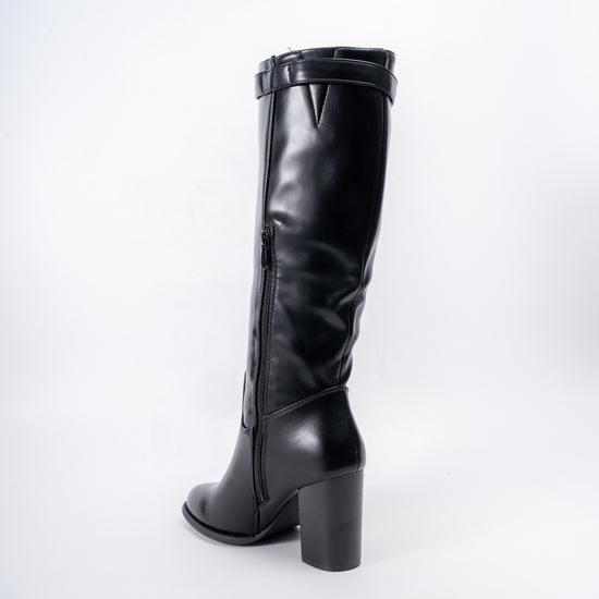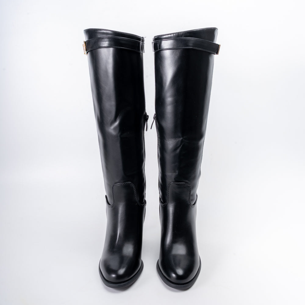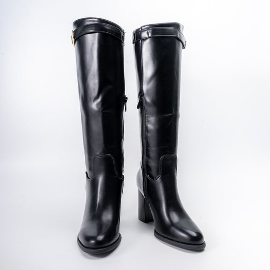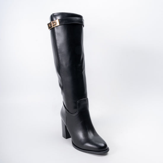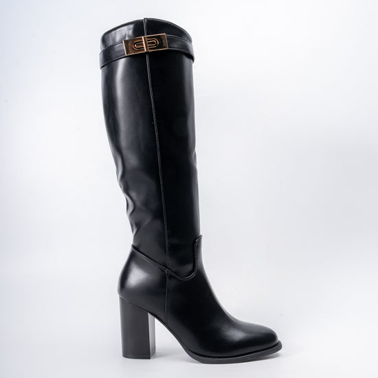 Step out in style with the Night Glam – Black Casual Boots, designed to make every evening unforgettable. These sophisticated knee-high boots feature a smooth black finish with a bold chunky heel and a sleek gold accent buckle, marrying modern glamour with everyday comfort. Crafted for confident strides, their structured silhouette and soft inner lining offer all-night support, making them the go-to choice for those who love to blend elegance with edge.