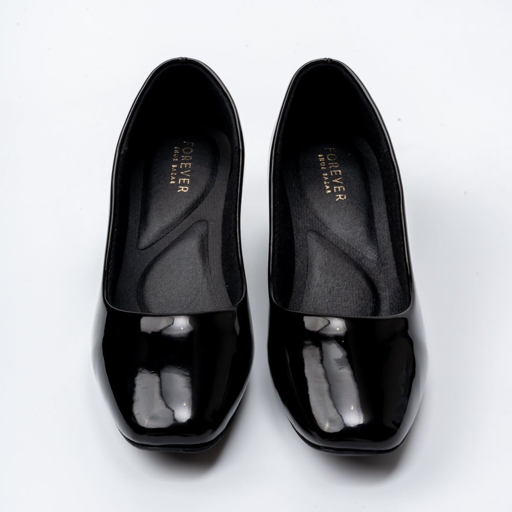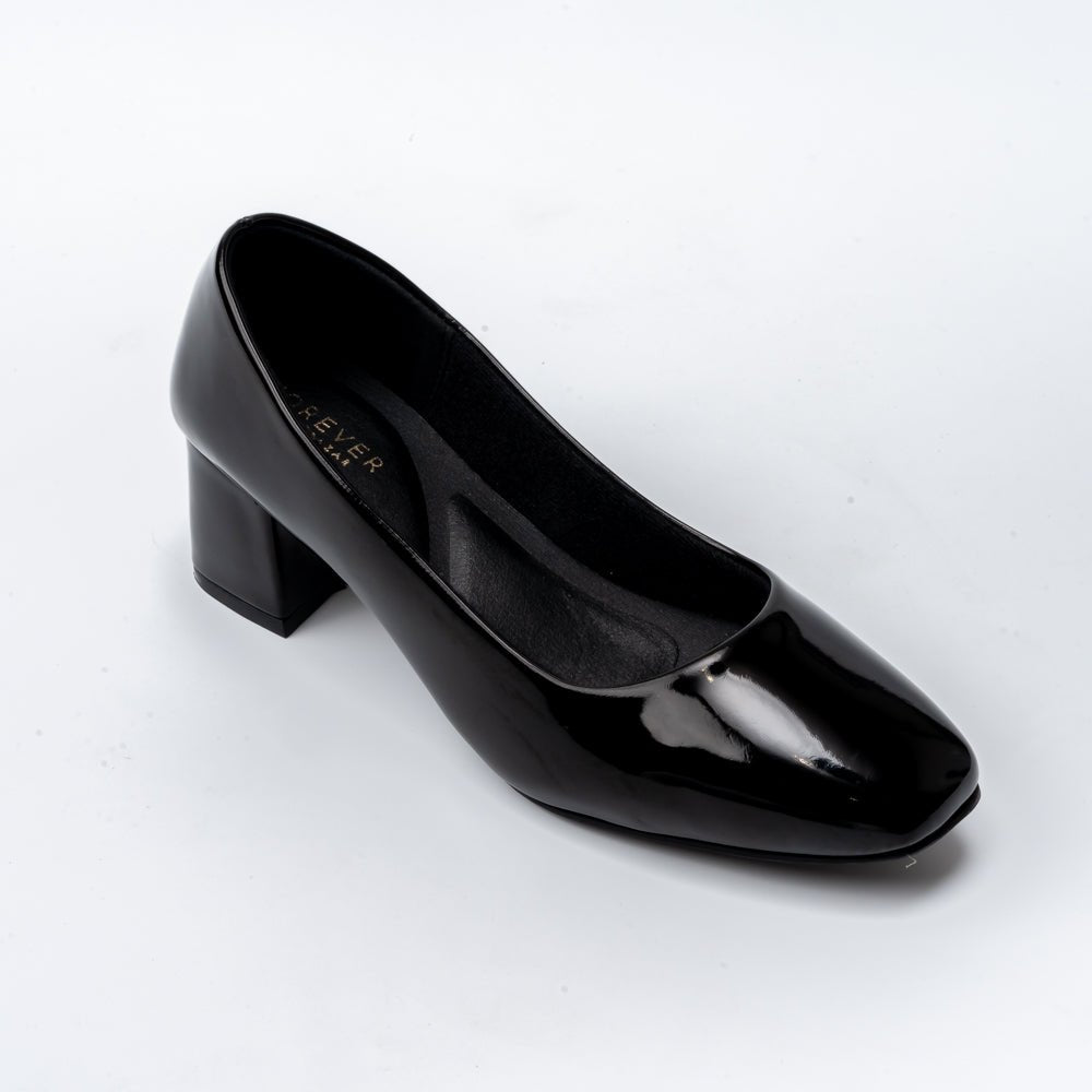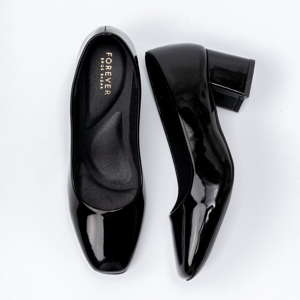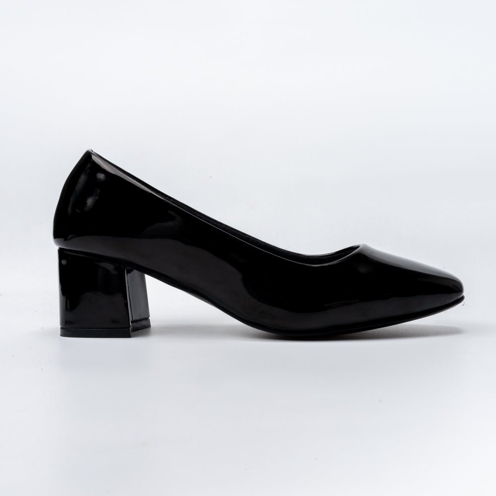 USP: Elegant Patent Finish in Comfortable Low Block Heels