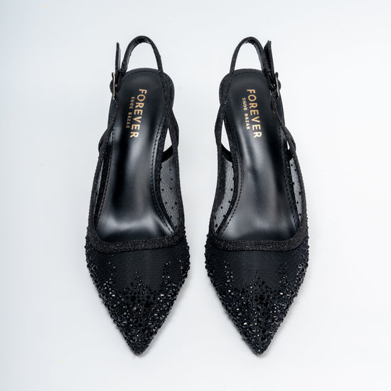 USP: Net Upper with Rhinestones and Pencil Heel