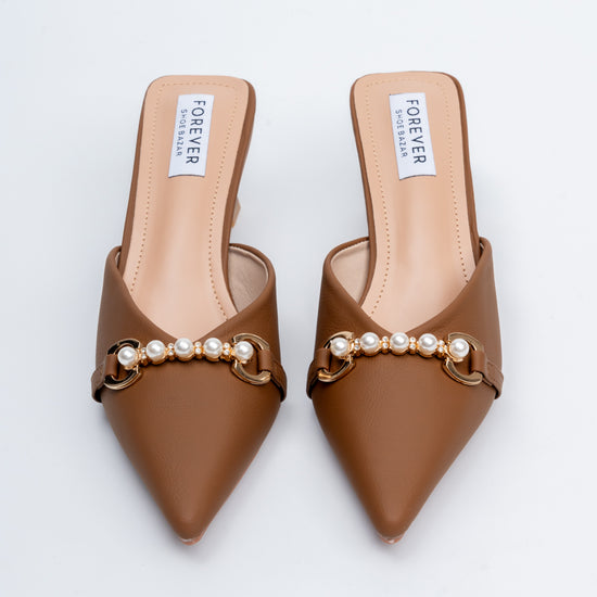 Pearl Embellished - Brown Mules