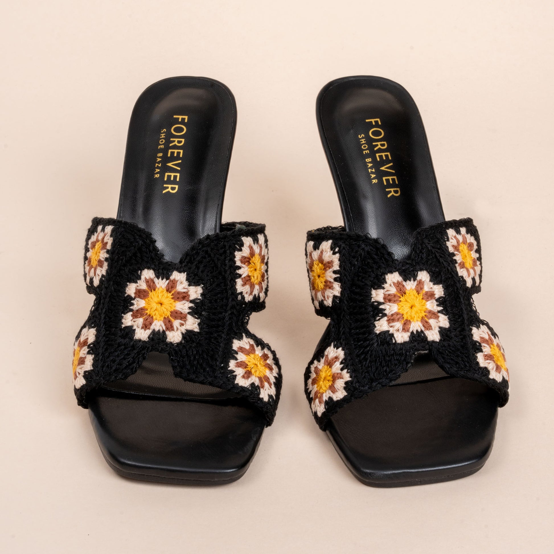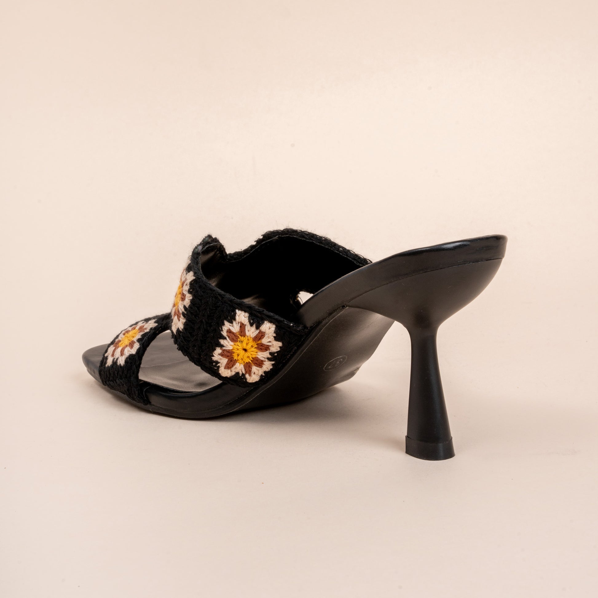Step into artistry with these beige pencil heels, featuring vibrant crochet detailing for a pop of color. Perfect for adding a playful twist to any outfit.