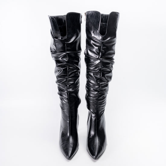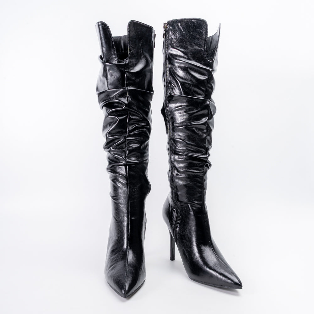 USP: Metallic Wrinkled Finish with Pointed Toe Stiletto Heel