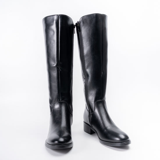 Step into enduring style with the Heritage Rider – Black Casual Boots. These knee-high boots unite premium black faux leather with a comfortable side stretch panel and a classic low block heel, echoing equestrian roots while delivering contemporary polish. Their timeless silhouette and versatile fit ensure effortless pairing with both casual and refined looks, making them a staple for every fashion-forward wardrobe.