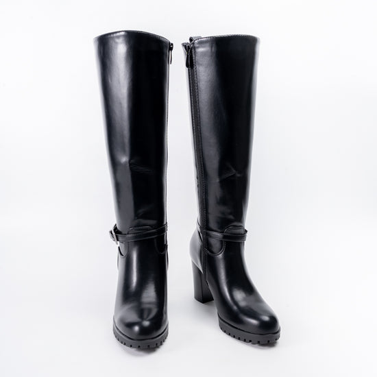 Step into the season with confidence in the Autumn Aura – Black Casual Boots, crafted for versatile style and urban adventures. These knee-high boots feature a refined black sheen, enhanced by a modern square buckle and a sturdy block heel that balances elegance with comfort. The subtly rugged sole offers added grip, making them perfect for outdoor strolls or casual gatherings while keeping a sophisticated edge.