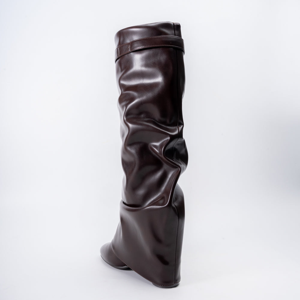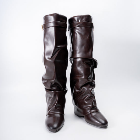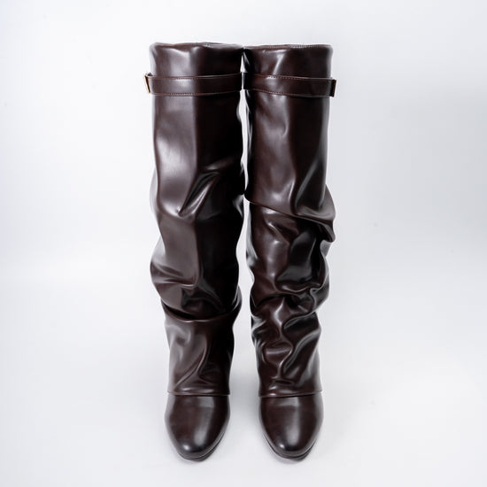 Redefine your style with The Revival – Coffee Casual Boots. Featuring a luxe slouchy silhouette crafted from supple brown leather and accented with a sleek gold buckle strap at the top, these boots embody retro-inspired flair with a modern twist. The softly pointed toe and comfortable wedge sole make them ideal for all-day wear, ensuring both visual impact and effortless versatility for your everyday wardrobe.